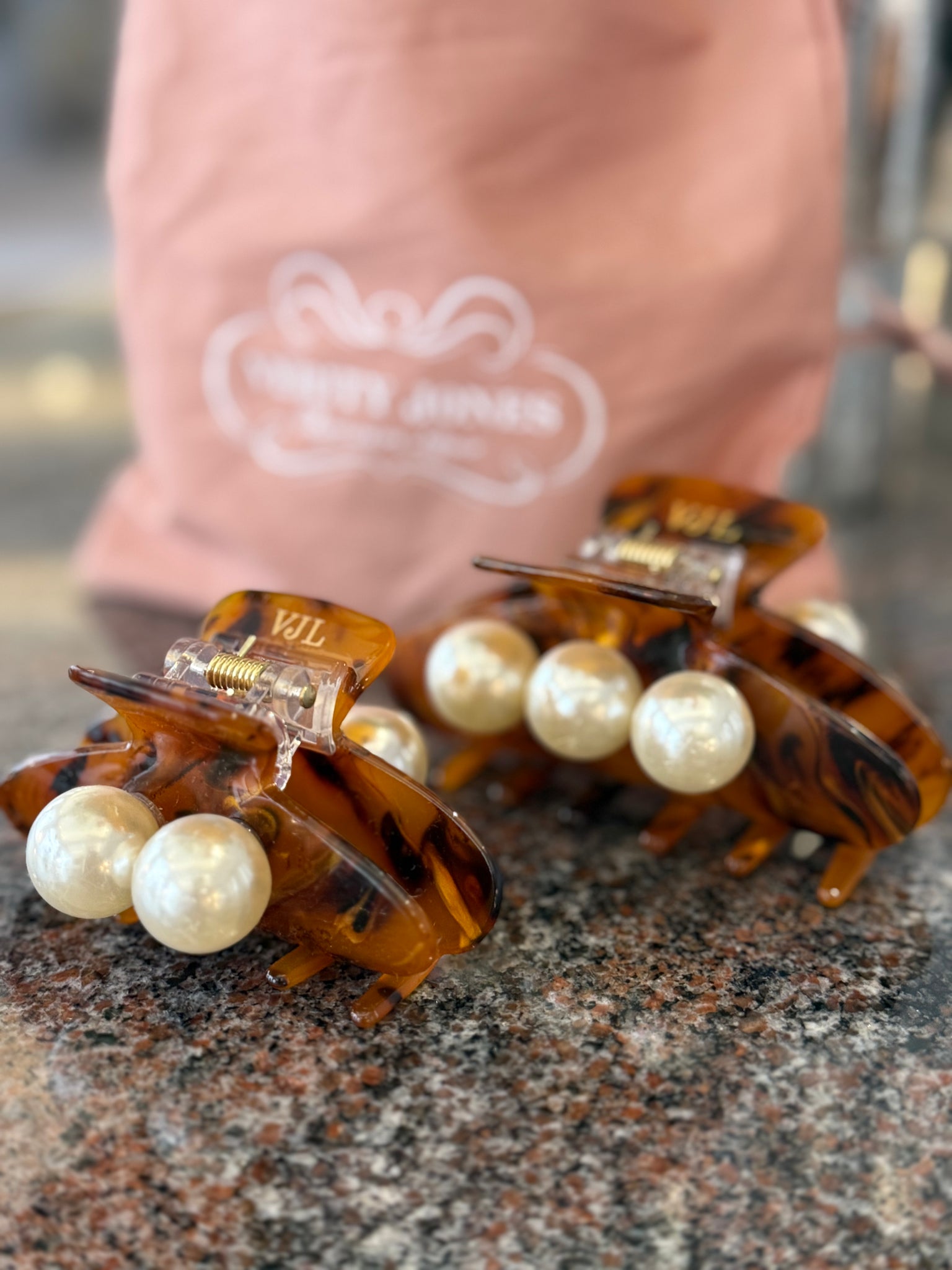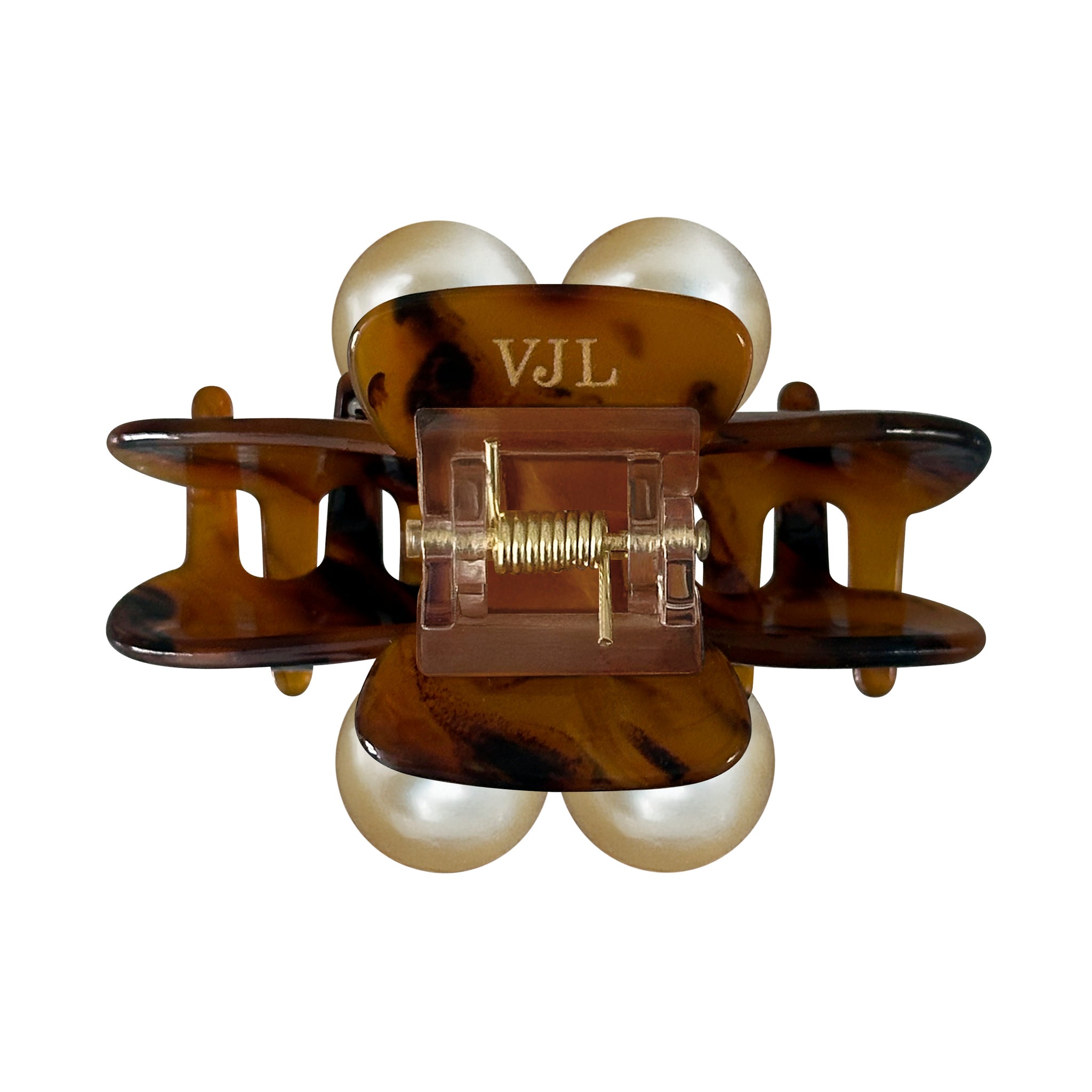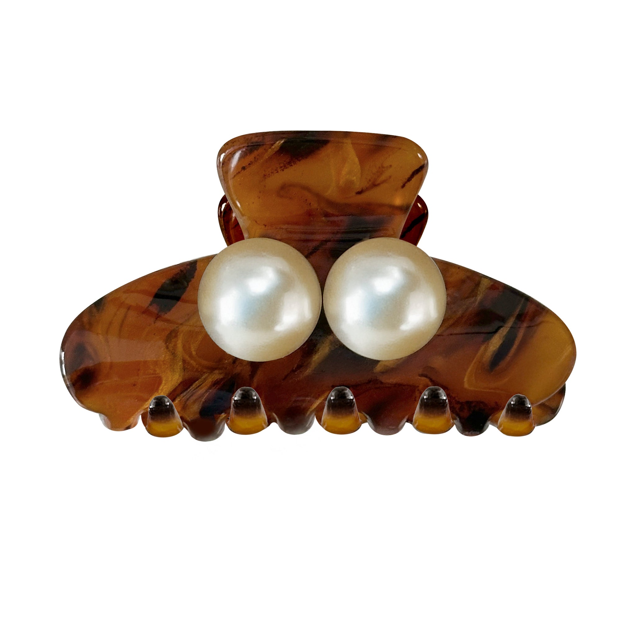 大粒のパールが2粒ついているクロー・クリップです。鼈甲とパールのコンビネーションがとても素敵なクロー・クリップです。ハーフアップにしていただいても素敵です。